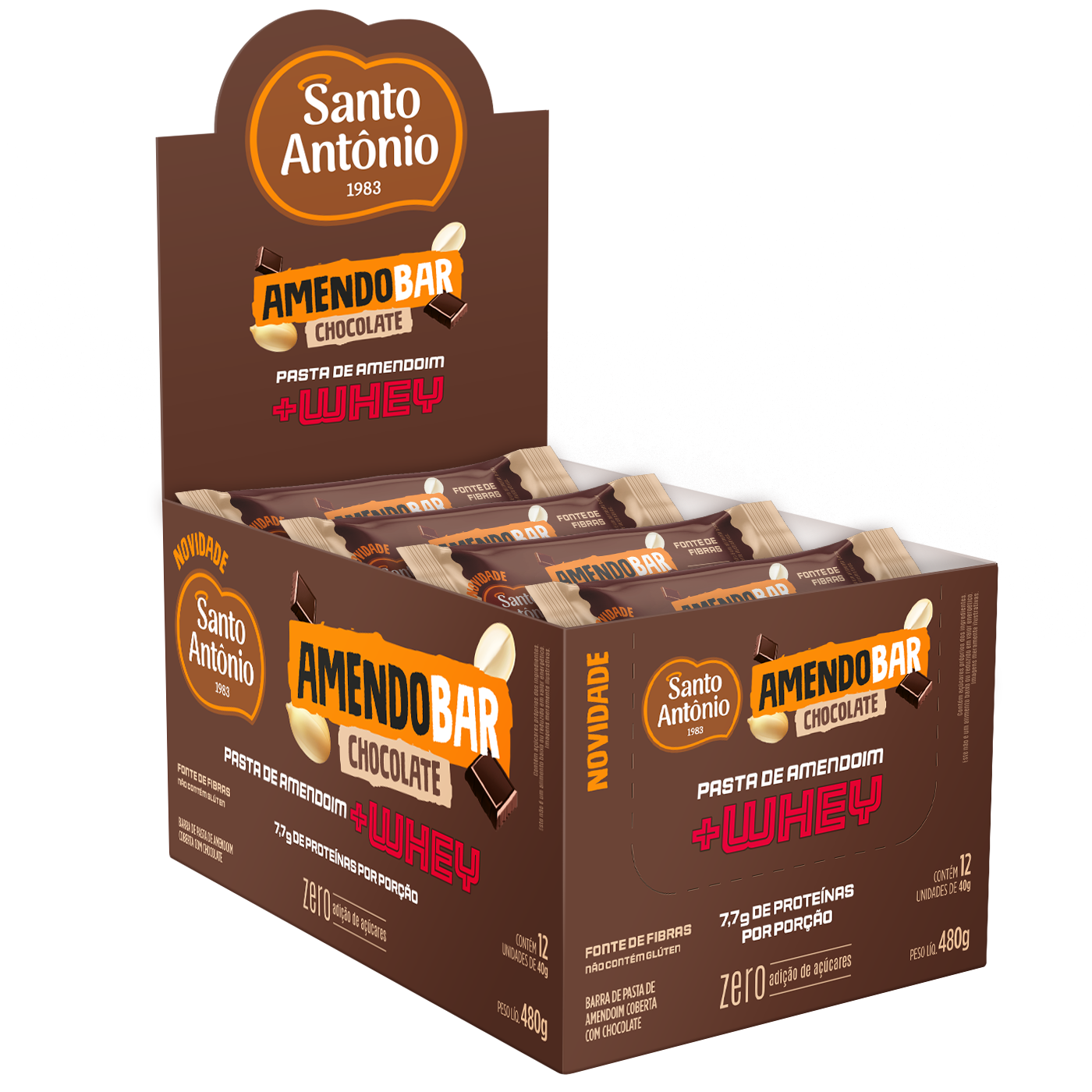DISPLAY BARRA DE PASTA DE AMENDOIM COBERTA COM CHOCOLATE 480G (12 UNID. 40G)