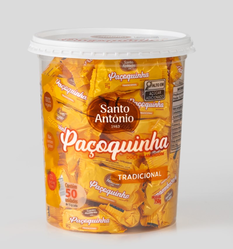 A nossa Paçoca Rolha Tradicional é a essência da doçaria brasileira! Feita apenas com amendoim selecionado, açúcar e uma pitada de sal, ela oferece a textura macia e o sabor autêntico que todo mundo ama. Perfeita para saborear a qualquer hora, é a opção ideal para quem busca um doce simples, gostoso e que remete à infância. Disponível nos potes de 900g, 750g e 510g.