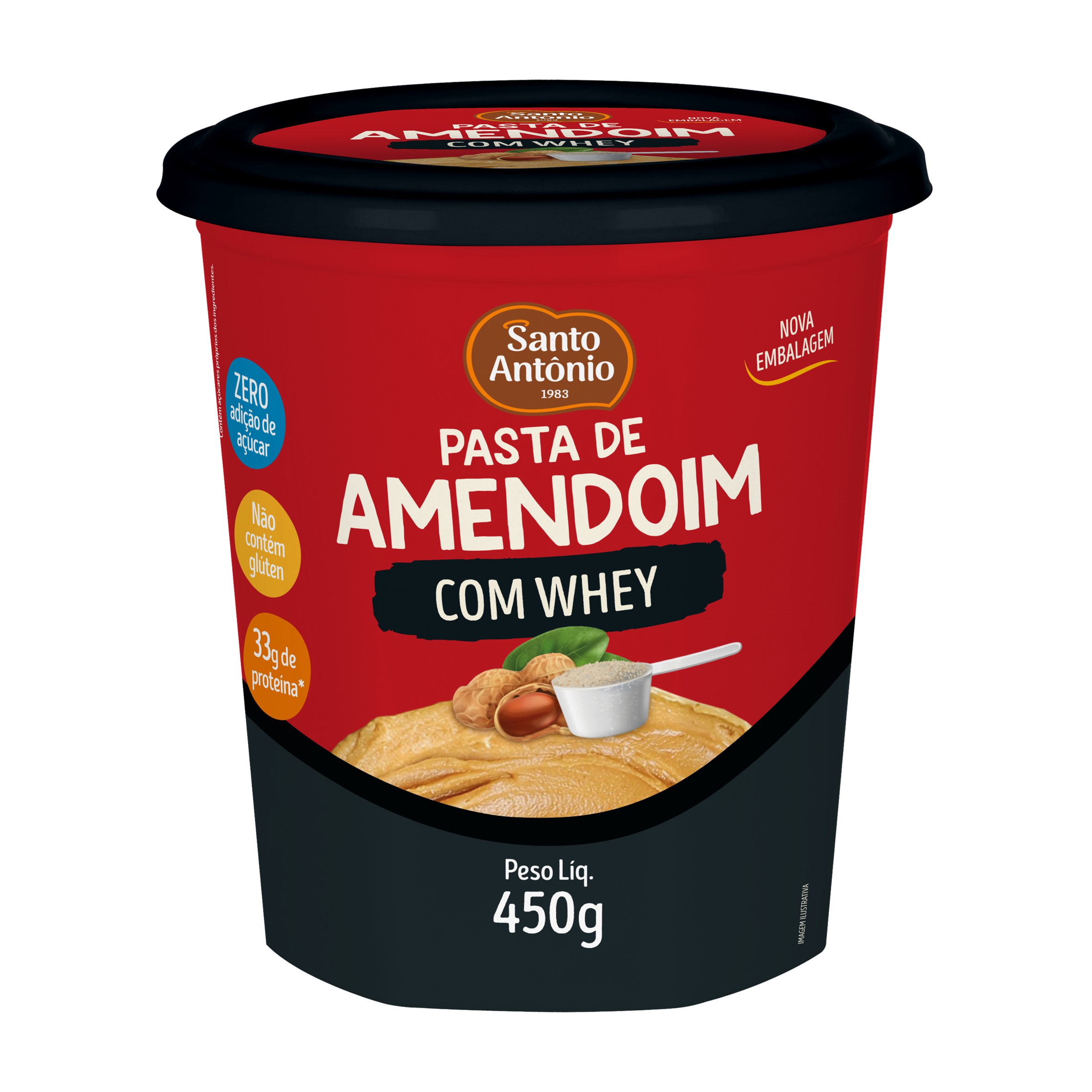 Ingredientes Principais: Amendoim torrado e proteína isolada de soro de leite (whey).